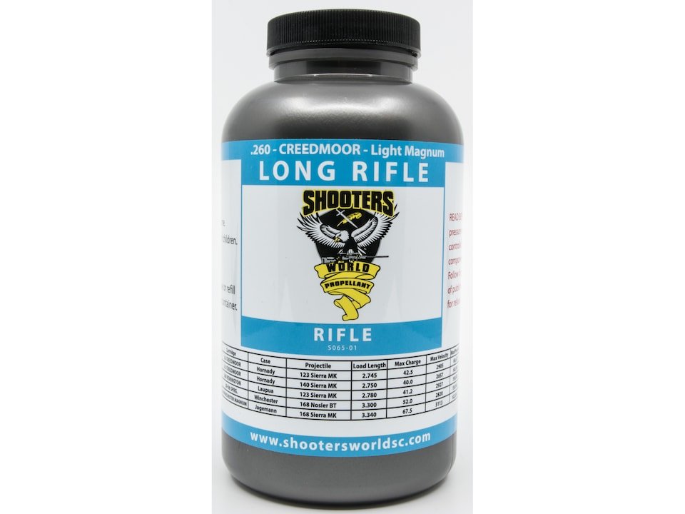 Shooters World Long Rifle is a top-tier, extruded smokeless powder specifically designed for high-performance rifle cartridges, particularly those demanding both high loading density and optimal velocity. It is a canister form of the Explosia bulk and Lovex canister propellant S065.